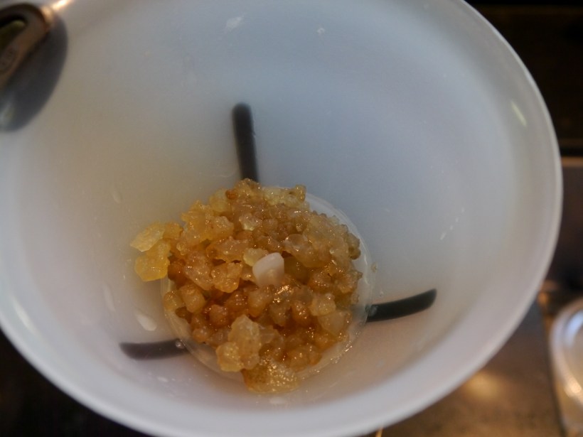 When making water kefir, it’s best to use unrefined, unbleached sugar, or a mix of refined and unrefined. Refined aka “white sugar” lacks minerals that are found in unrefined sugar, and minerals help feed the grains. Also, the type of water you use is important. Filtered, distilled and reverse osmosis water aren’t recommend because all are low in minerals. Municipal tap water is an option, if it doesn’t have too much chlorine. Letting the water sit out overnight with no lid allows the chlorine to evaporate.  If filtered is your only option, you may need to add 1/8 tsp of sea salt to increase the mineral content. I recommend just starting with sugar and if you find your grains aren’t multiplying, try adding the salt. Since I’ve been making kefir for awhile, my first step is to separate the grains from the water.  Here’s my grains in the water they’ve been fermenting in for 48 hours. It’s ready to be infused with fruit, and the grains will be used to start a new batch. By the way, the water isn’t dirty, the brownish color is from the sugar that’s dissolved.  My container is a 32 ounce juice bottle, and I now use it for the first ferment. It’s the perfect size, since you need about one quart of water to make a batch. P1010093 Next, I separate the grains and water, so I need another other bottle and a funnel. This bottle has a wider mouth because I like to infuse my kefir with frozen fruit, the wider opening makes adding the fruit easier. So far, berries are my favorite for infusing. It’s important to use plastic or wooden utensils when working with the grains, metal can damage them. P1010105 Now I pour the water from the first ferment into the bottle that will be use for the second ferment or “infusion”  as I like to call it. Here you can see what the grains look like outside of the water.  The brownish color is due to the sugar I’ve been using. If you use a lighter color sugar, your grains will be lighter. It’s perfectly fine they are brownish, as they grow they’ll usually become clearer. I have about 2 tablespoons of grains, which is the perfect amount to ferment one quart of water.