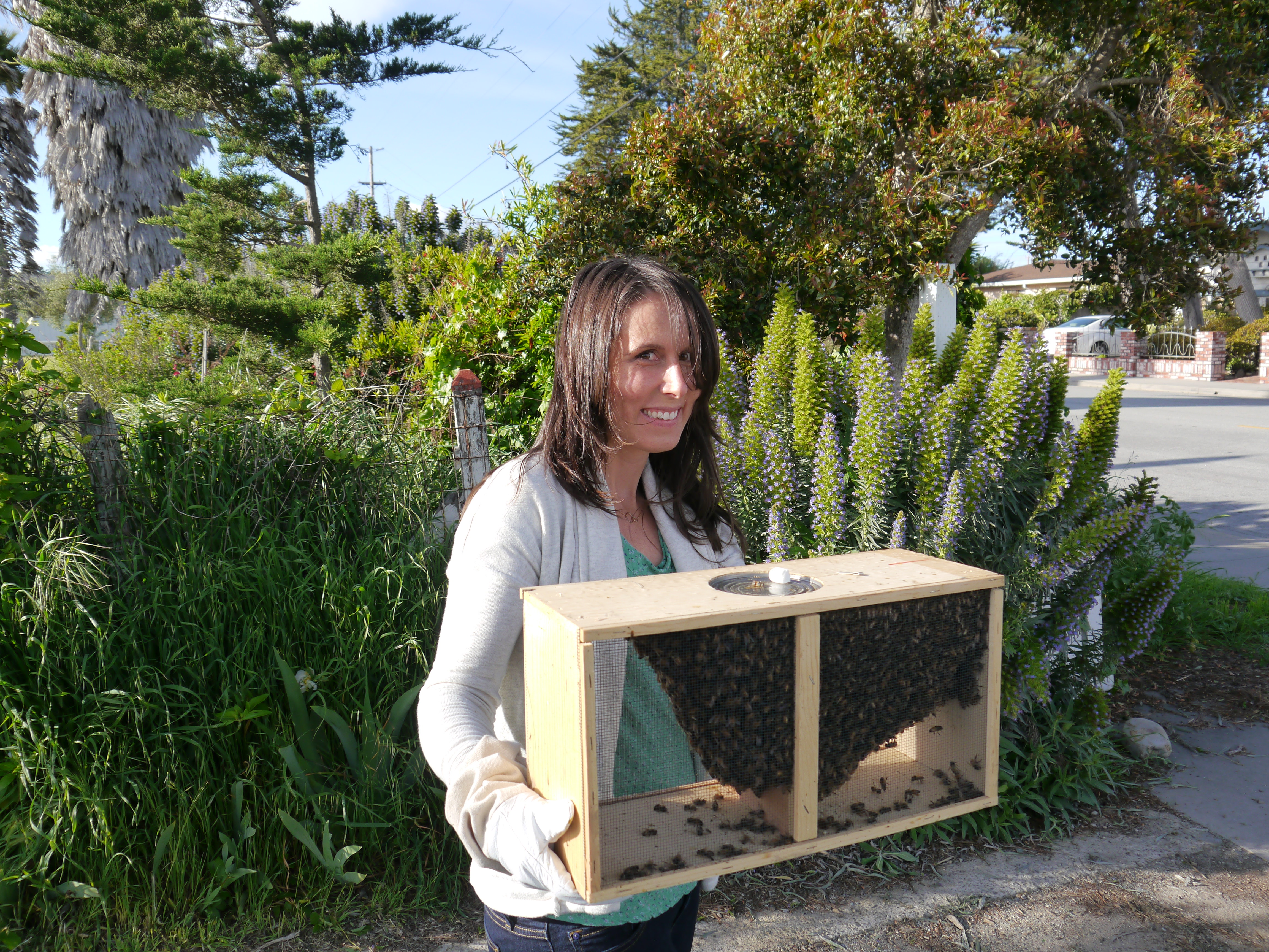 Here’s a better shot of the bees. I look a bit nervous…I didn’t want to drop them!