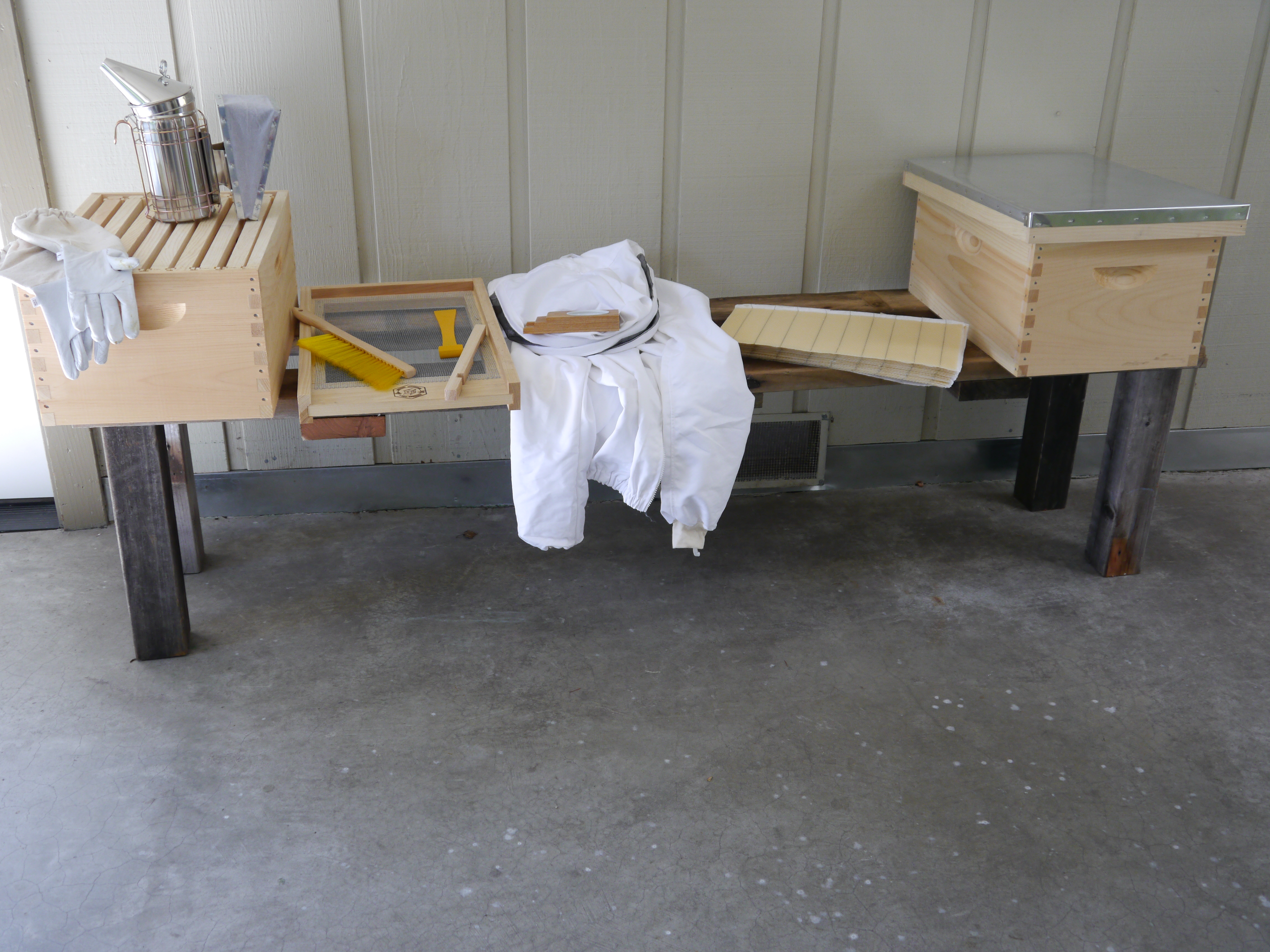 Here I am, in my jacket and hood. And yes, my pants are tucked into my socks, I didn’t want bees flying up my pants! I got my Epi-Pen too, just in case!