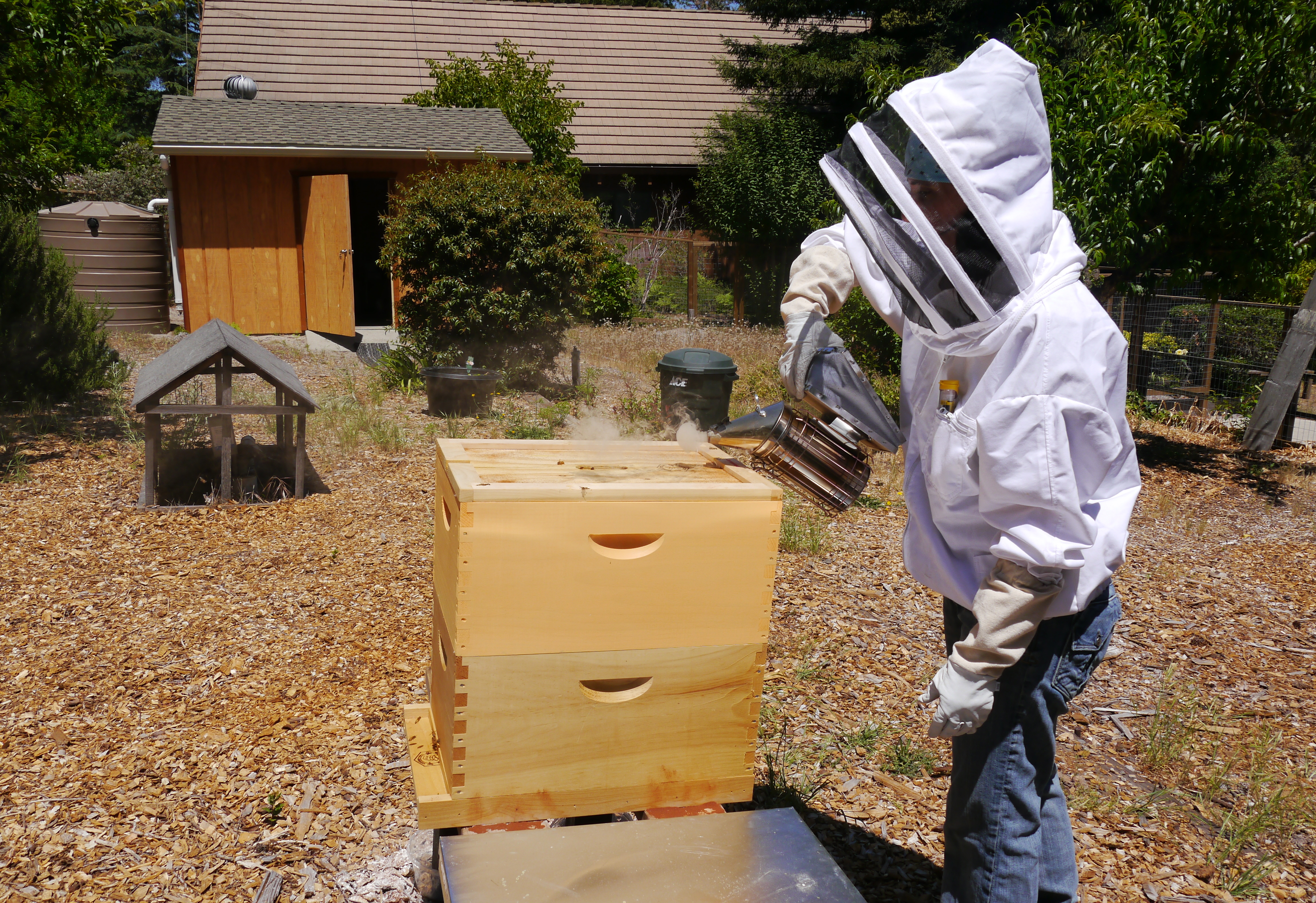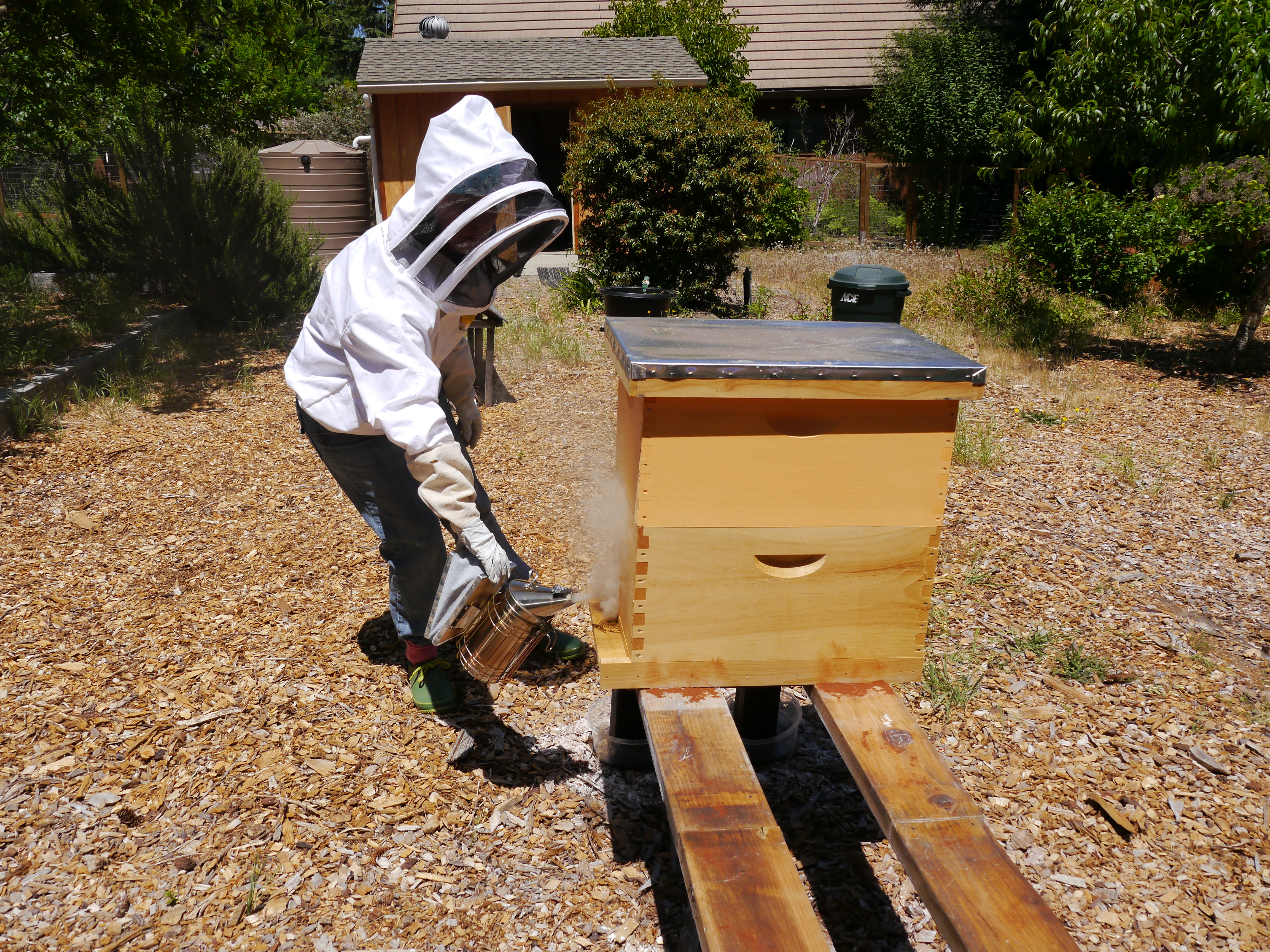 Smoking the entrance, so they know I’m there. A bit more smoke than I wanted came out!