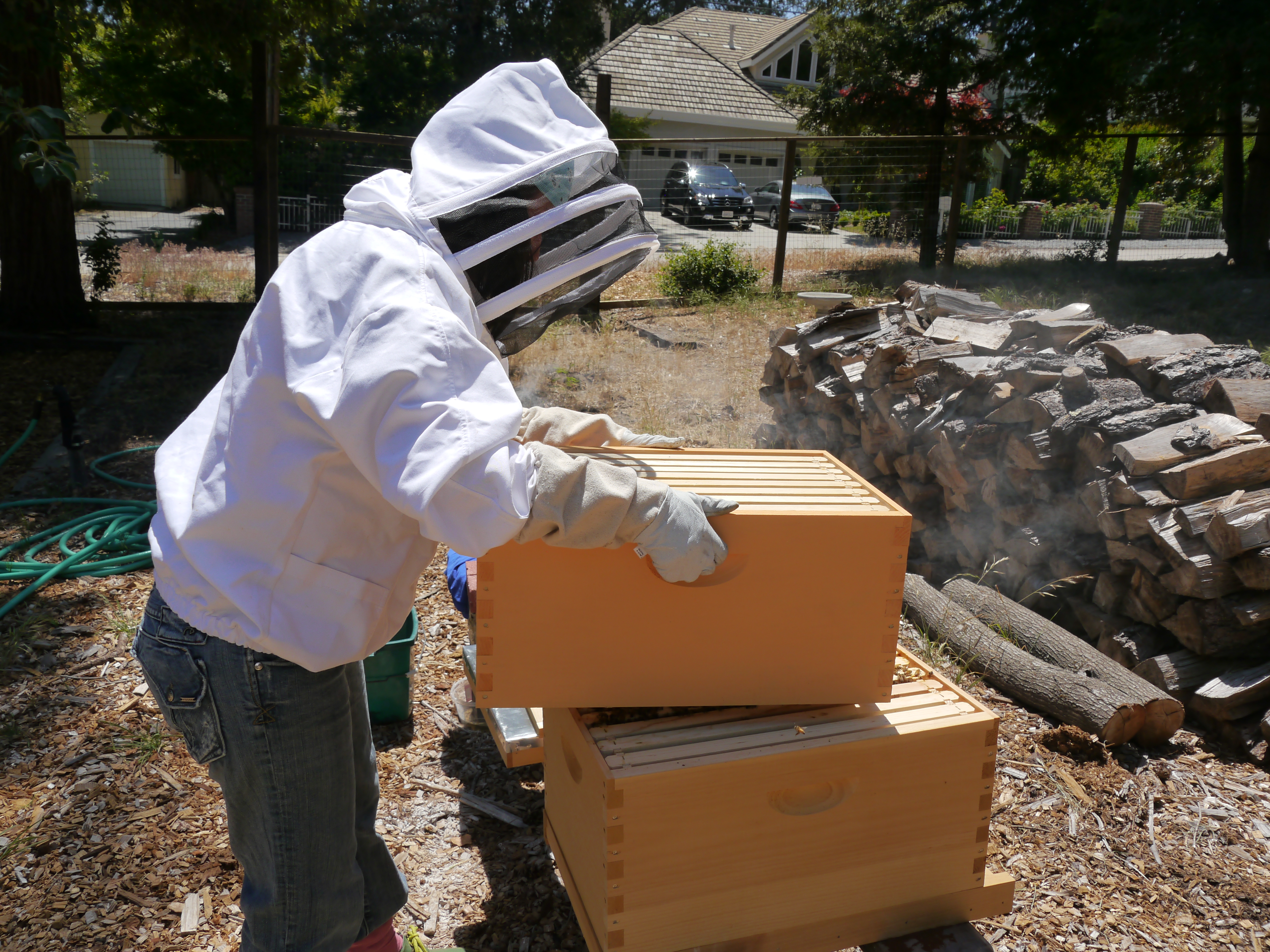 I’m removing the top box. There are usually bees on the bottom, so I have be very careful when I set it down.