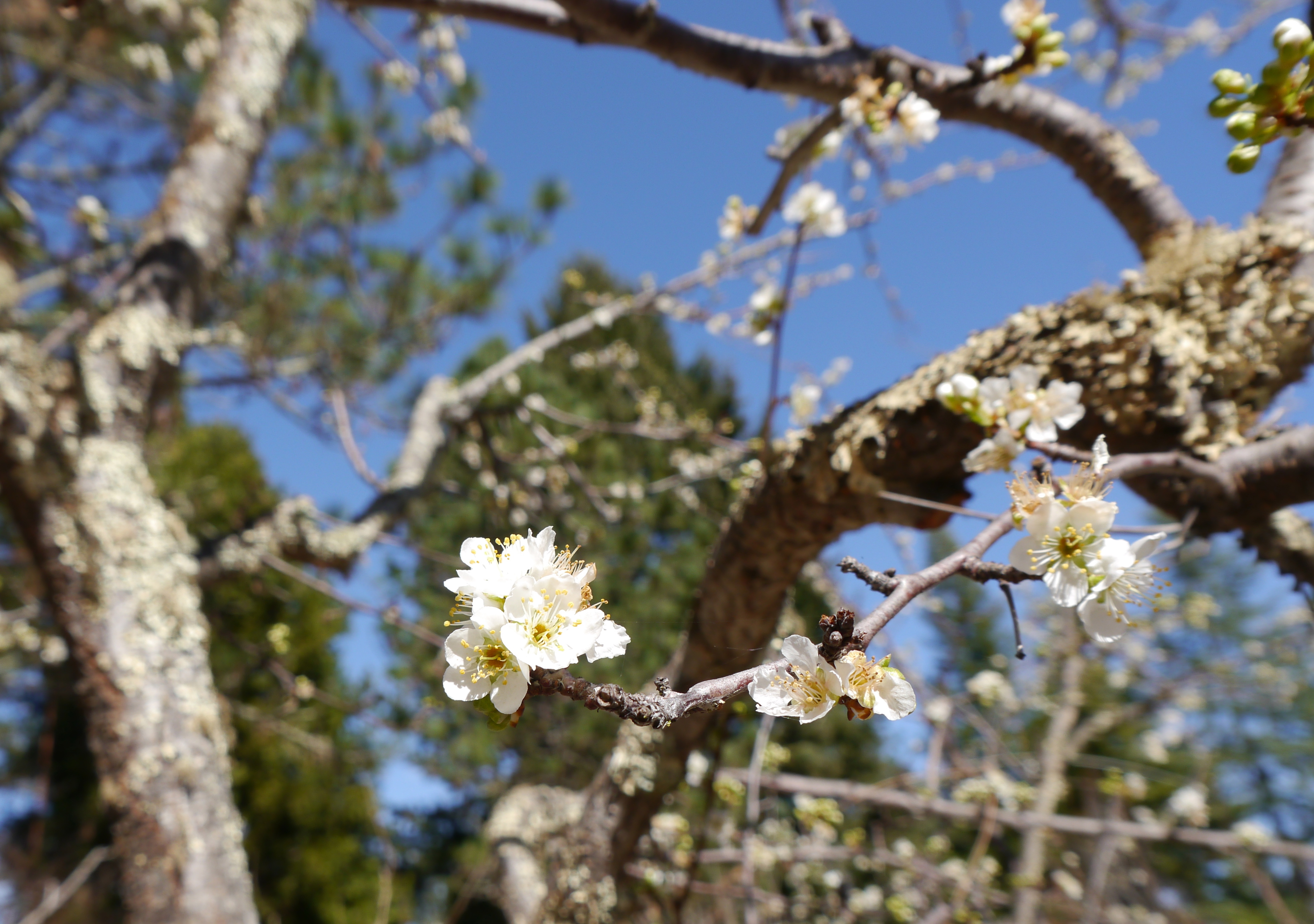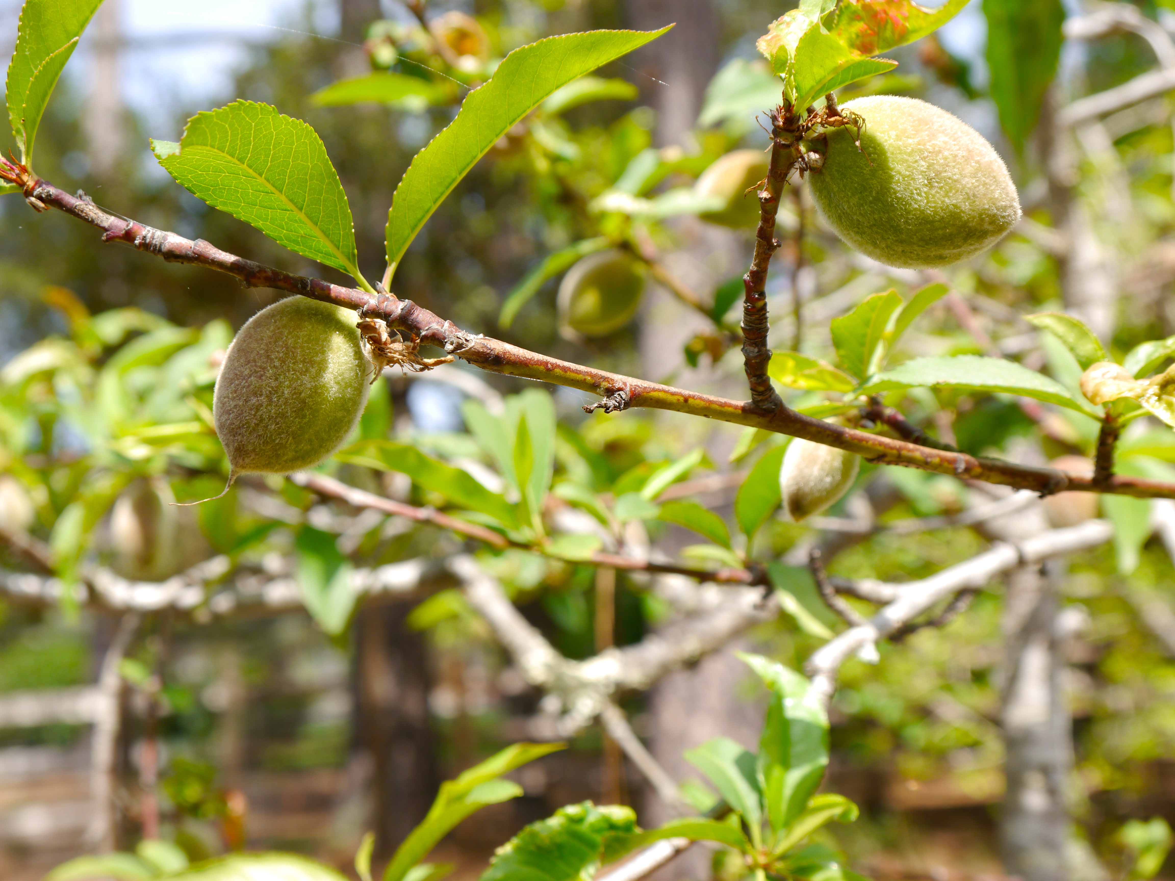 In February, I was working on cleaning up the orchard from the prune, and things were just starting to bloom. I snapped a few pictures of the early blossoms. In early May, I thinned out the new fruit, feed the trees compost, gave them a much-needed deep water, and looked for any pests and signs of disease. I took some pictures of the cute baby fruit the spring blossoms had grown into. It’s really cool to watch the blossoms turn into fruit!