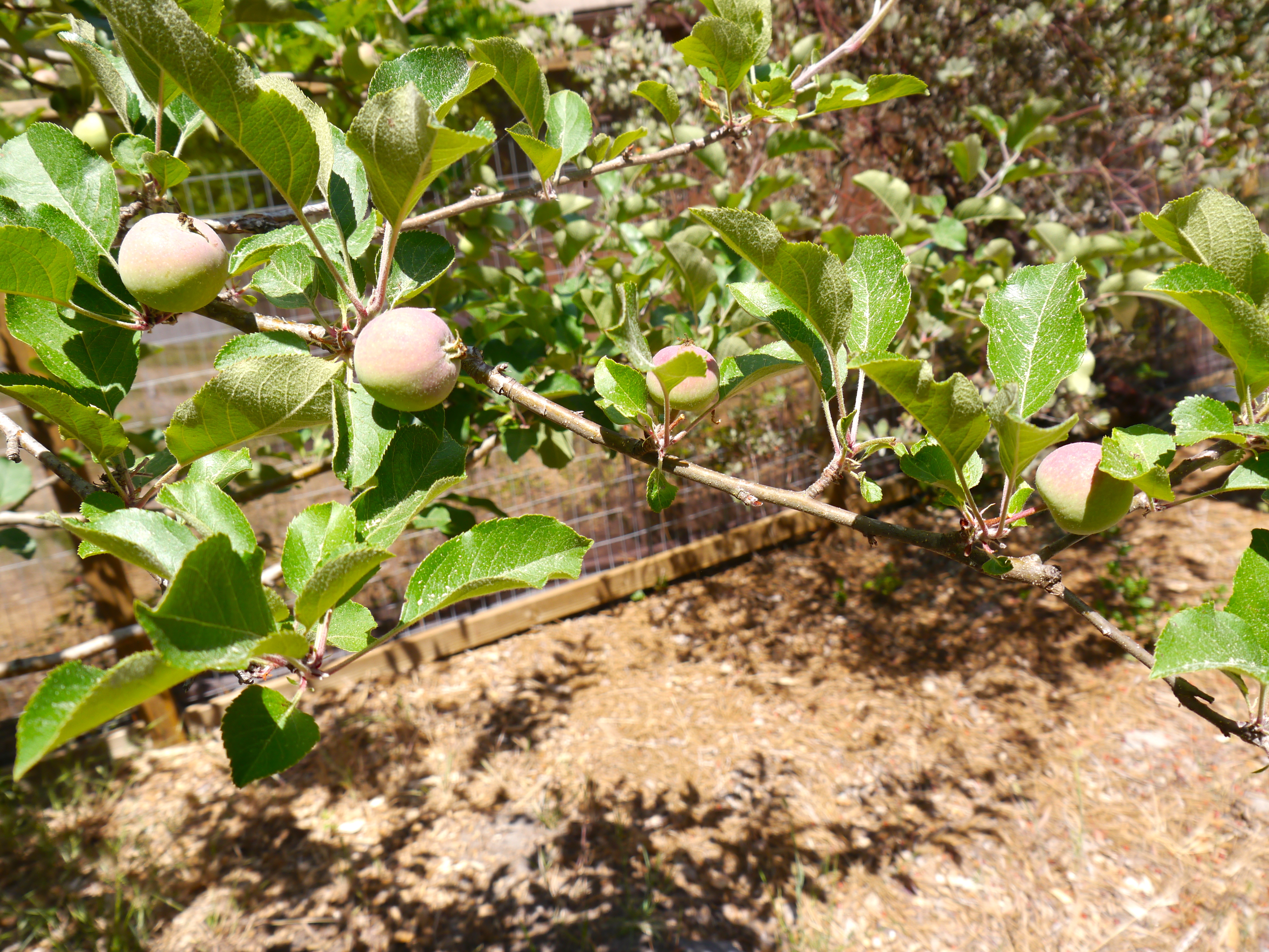 A cluster of apples, from our Pippin apple tree. When thinning fruit, I need to remove all but one from the cluster. It’s kind of sad to get rid of all that fruit!