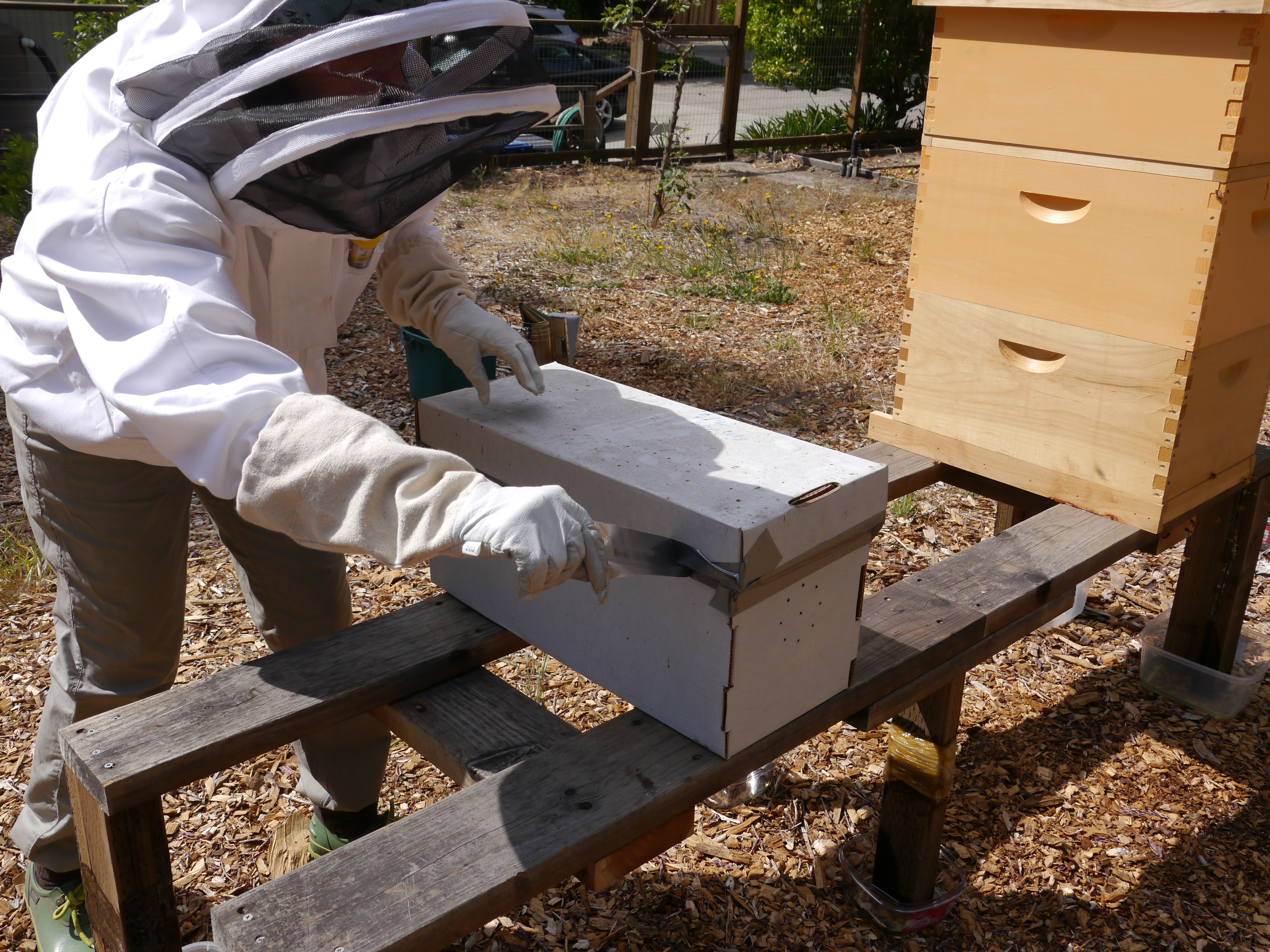 Here’s the nuc, ready to be opened. We let them settle for 30 minutes after pick up before attempting to open it.