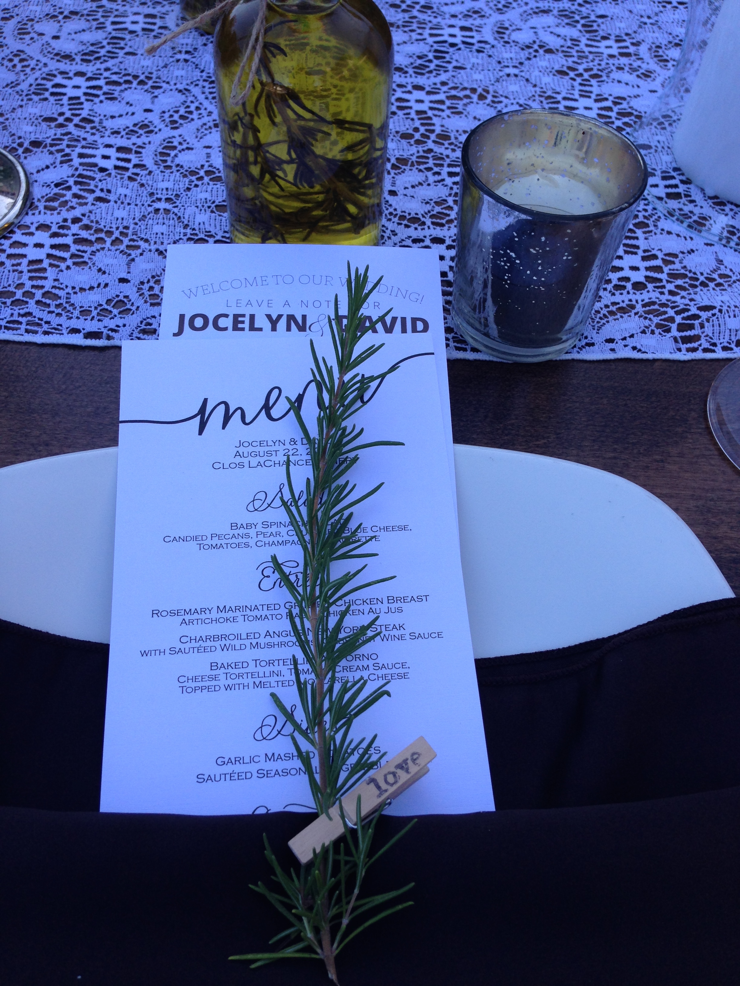 Our friend’s needed rosemary for the place settings at their wedding. My overgrown rosemary bush was easily able to spare 150 sprigs!