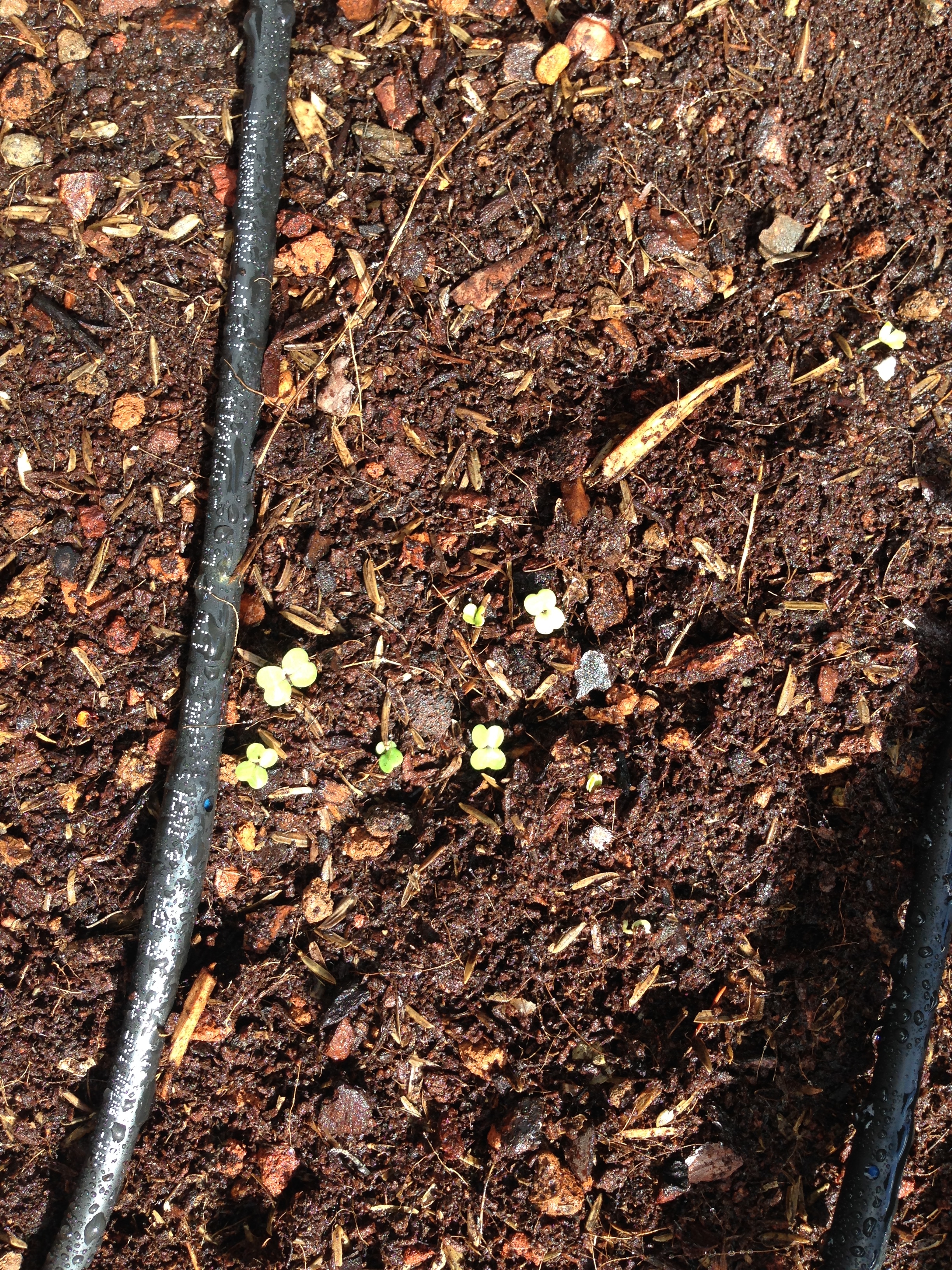 A week later, the first sprouts appeared! The ones on the left are cabbage, the ones on the right are kale.