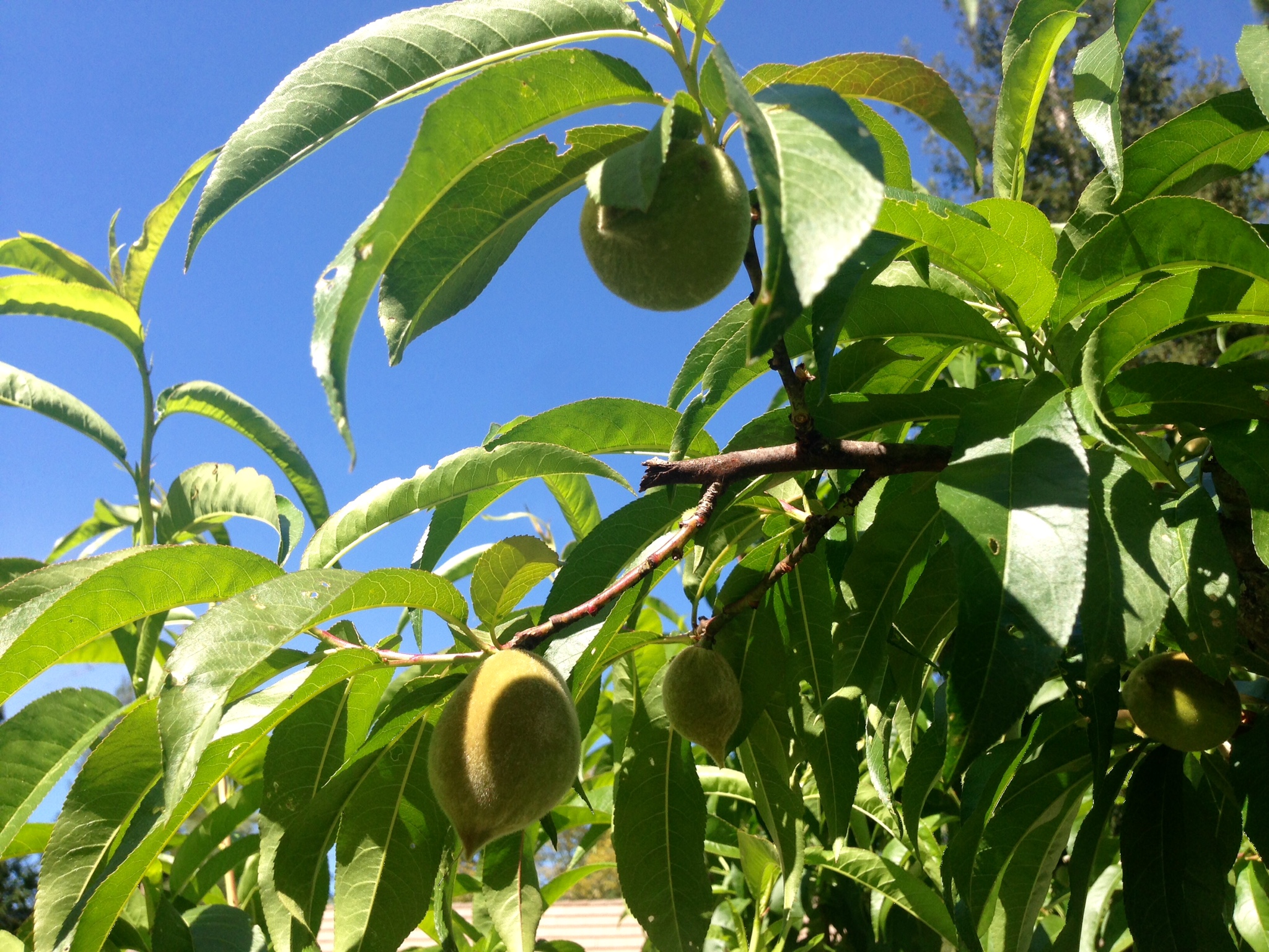 Here’s a before and after picture of a spot I thinned on my peach tree.